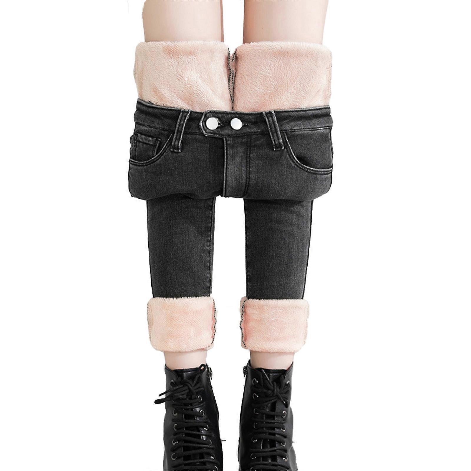 Women's fleece lined jeans women's winter warm jeans high waist jeans Retro color 31