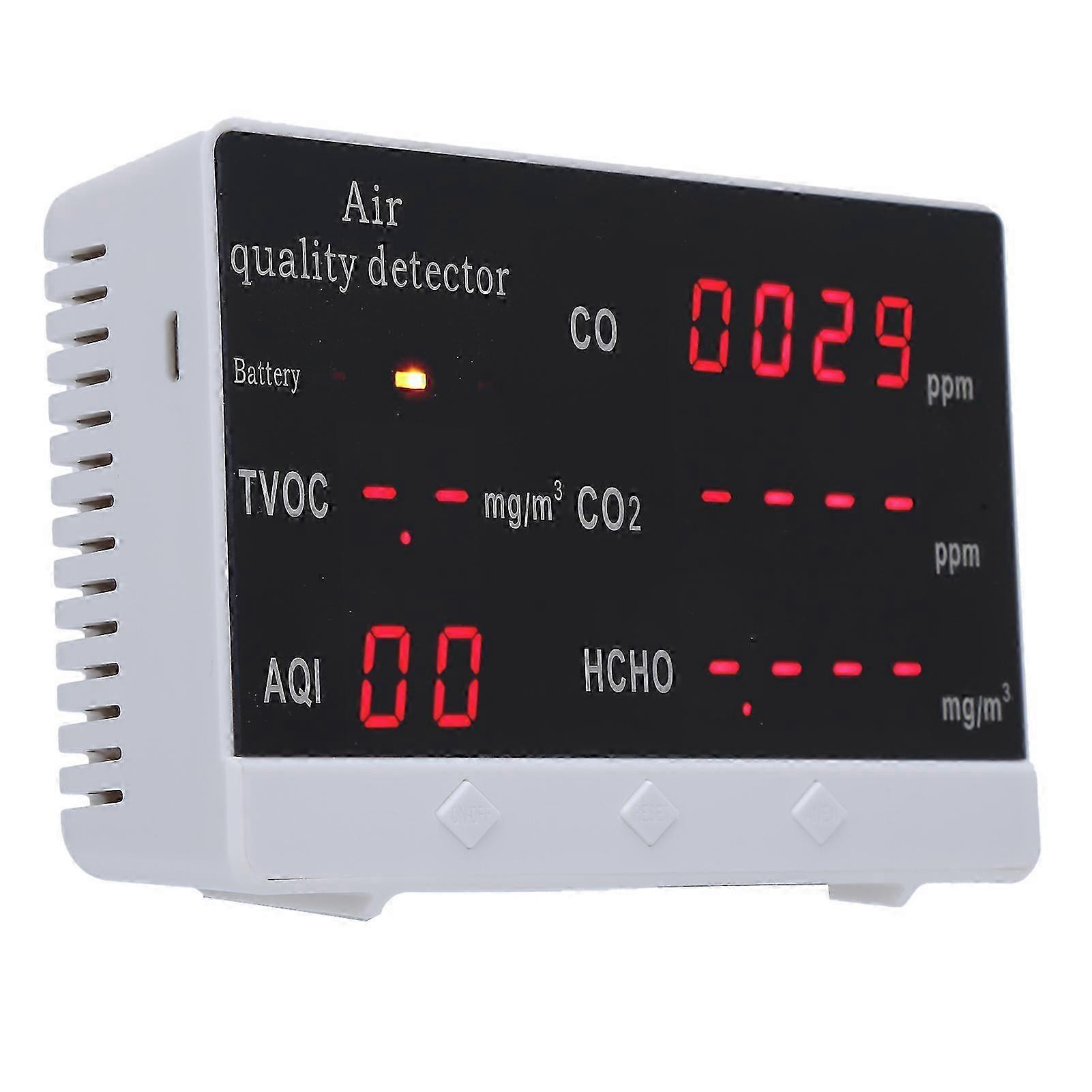 1、For formaldehyde HCHO, chemical pollutants TVOC, carbon dioxide CO2, 0.001mg/cubic meter thousand-digit accuracy. 2、Use imported brand air quality detection and analysis chips to ensure more accurate instrument detection. 3、Air monitoring can be carried out uninterruptedly to ensure timely detection of air quality problems. 4、Adopt natural air flow detection technology to more accurately determine air quality problems. 5、LED LCD color screen digital display, data hierarchy is clear, the display is clearer. 1 x Air Quality Detector 1 x USB Data Cable1 x Manual    Item Type: Air Quality DetectorMaterial: ABS + Electronic ComponentsProduct Size: Approx. 125 x 80 x 35mm / 4.9 x 3.1 x 1.4inWeight: Approx. 219g / 7.7ozDisplay Mode: LED Digital Display + Light IndicationError Fluctuation: 3%-30%Working Voltage: 5VPower-on Warm-up: 120 SecondsBattery Capacity: Lithium Battery 1000 MAh (Built-in Battery Shipped)Charging Time: About 4 HoursStandby Time: About 180-240 Minutes Note: Due to the light and screen setting difference, the item's color may be slightly different from the pictures. Please allow slight dimension difference due to different manual measurement.