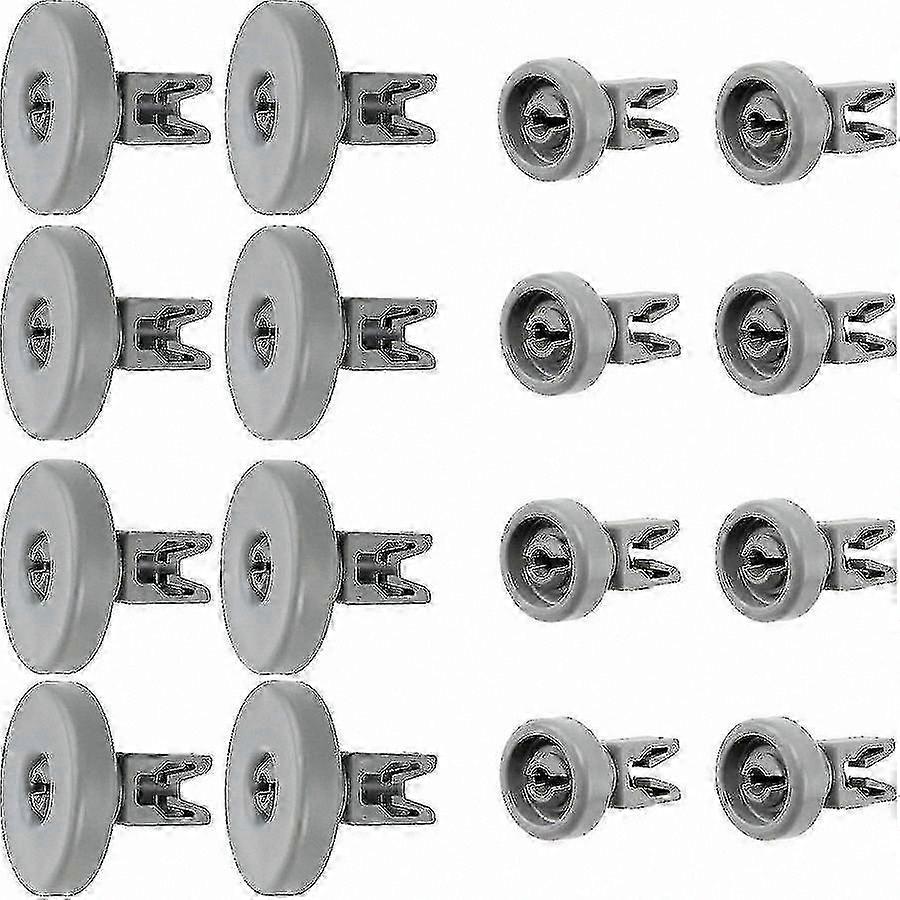 Dishwasher Basket Rack Wheels - 8 Upper and 8 Lower Replacement Wheels for Compatible Models