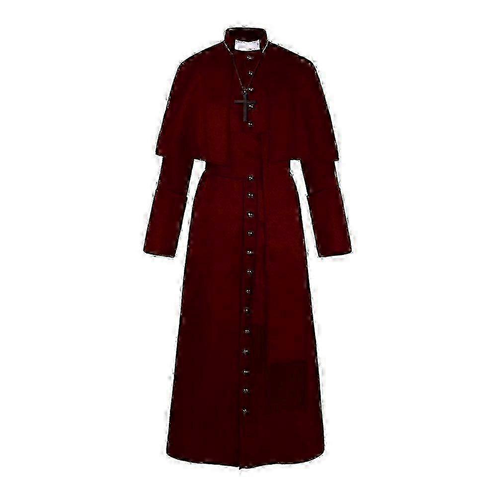 25-26 Red Clergy Robe with Capelet and Necklace for Men | Summer Priest Costume Gown