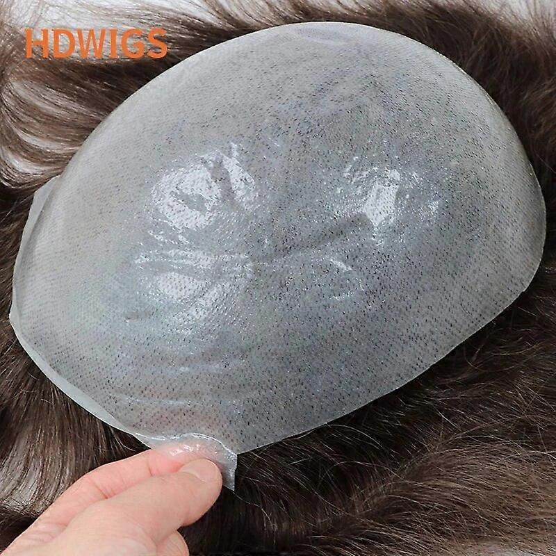 Natural Wave Straight Men Capillary Prosthesis Full Pu 0.04-0.06cm Vloop Male Toupee Human Hair System Unit Natural Hairpiece