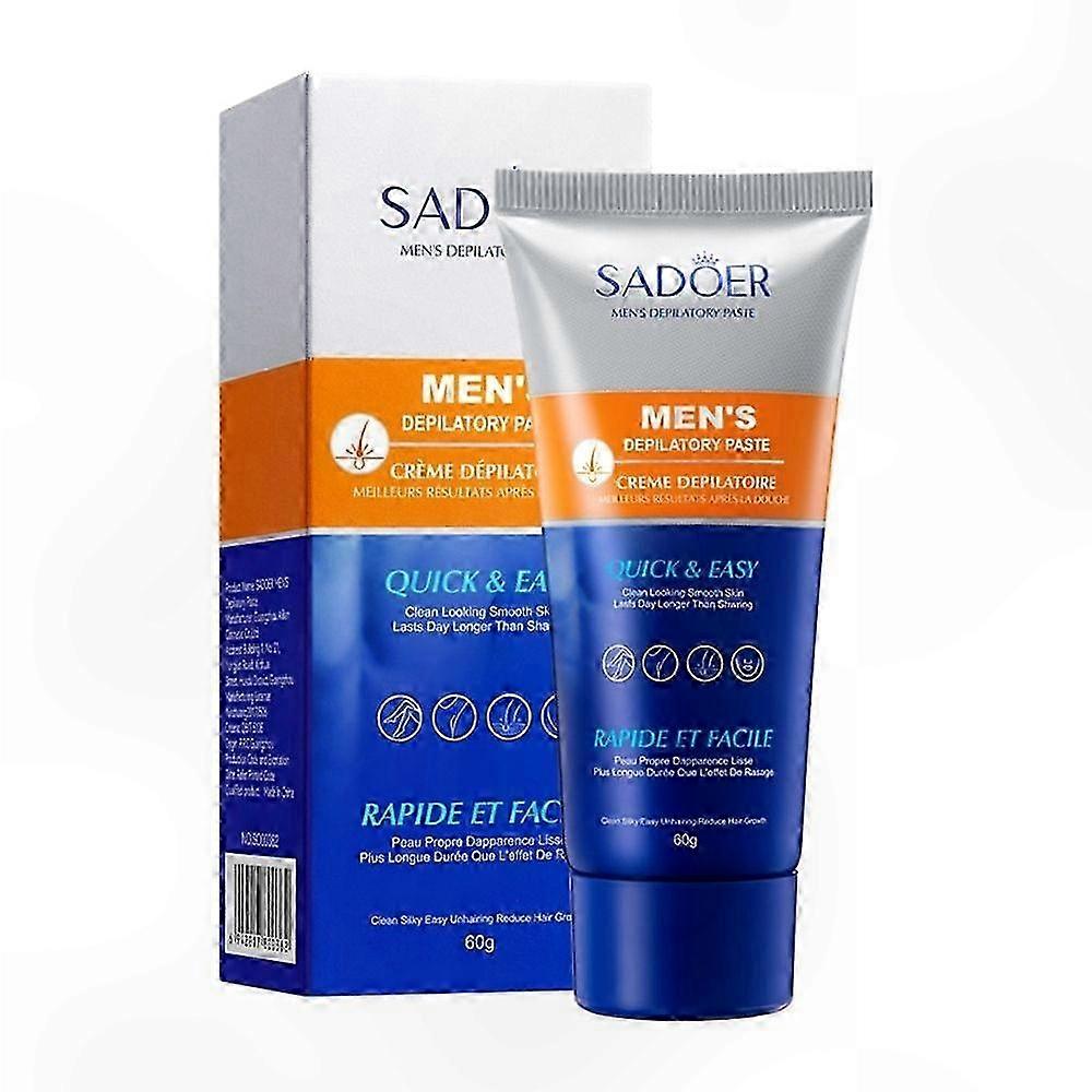 Name: Men's Hair Removal Cream Specifications: 60g Texture: Ointment Function: Painless Hair Removal 1. Our hair removal cream is designed for men and suitable for all skin types. It effectively removes hair from the back, shoulders, chest, abdomen, arms, armpits, and legs. 2. Formulated with a gentle, non-irritating formula, this cream leaves skin feeling moisturized. Active ingredients penetrate deep into the hair follicle to dissolve hair for painless hair removal. 3. Made with natural, safe ingredients to help keep even sensitive skin calm and smooth. 4. The cream rapidly penetrates the hair follicle, softens hair roots, and enables effective hair removal without leaving dark spots. 5. Easy to use—apply a full, even layer over the hair. Removes hair effectively in 7–15 minutes. Helps avoid razor nicks and cuts. Ideal for at-home hair removal. Package Included: 1/3/5 pcs * Hair Removal Cream