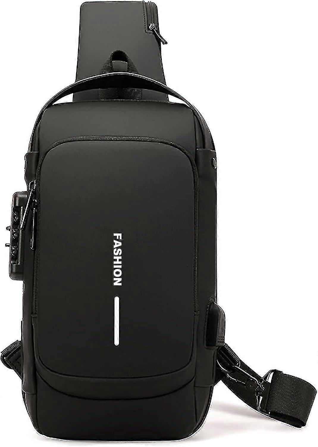 Theft Crossbody Sling Bag,waterproof Chest Daypack With Usb Charging, Shoulder Backpack For Men Women (black)