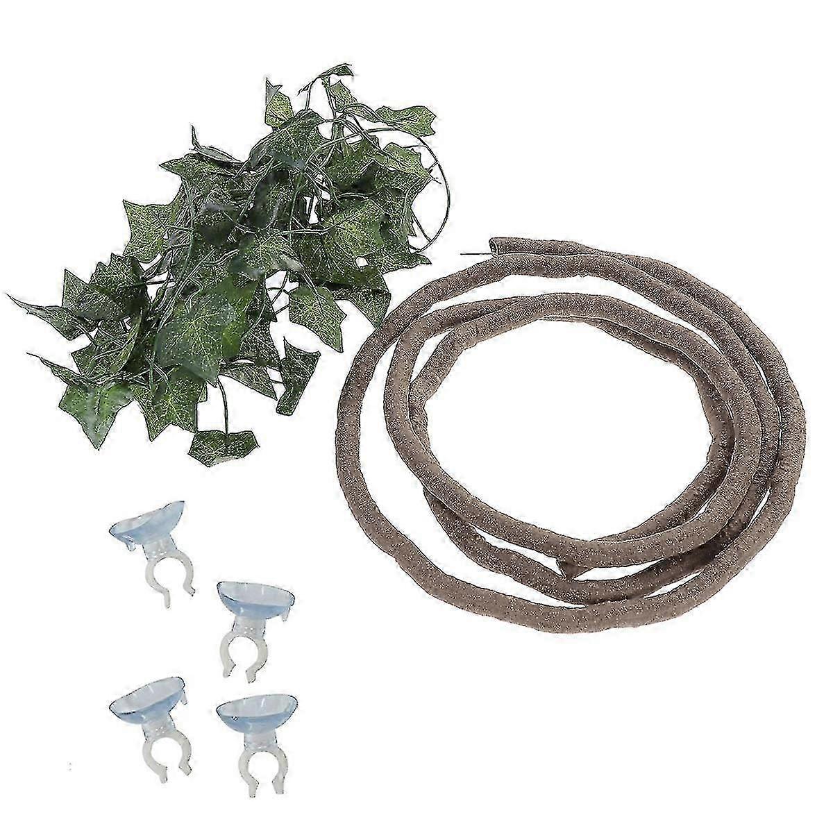 Jungle Vines Artificial Ivy Leaf Pet Habitat Decor With Suckers And Ivy Leaf For Lizard Frogs Snakes And More Reptiles(green)-FCY
