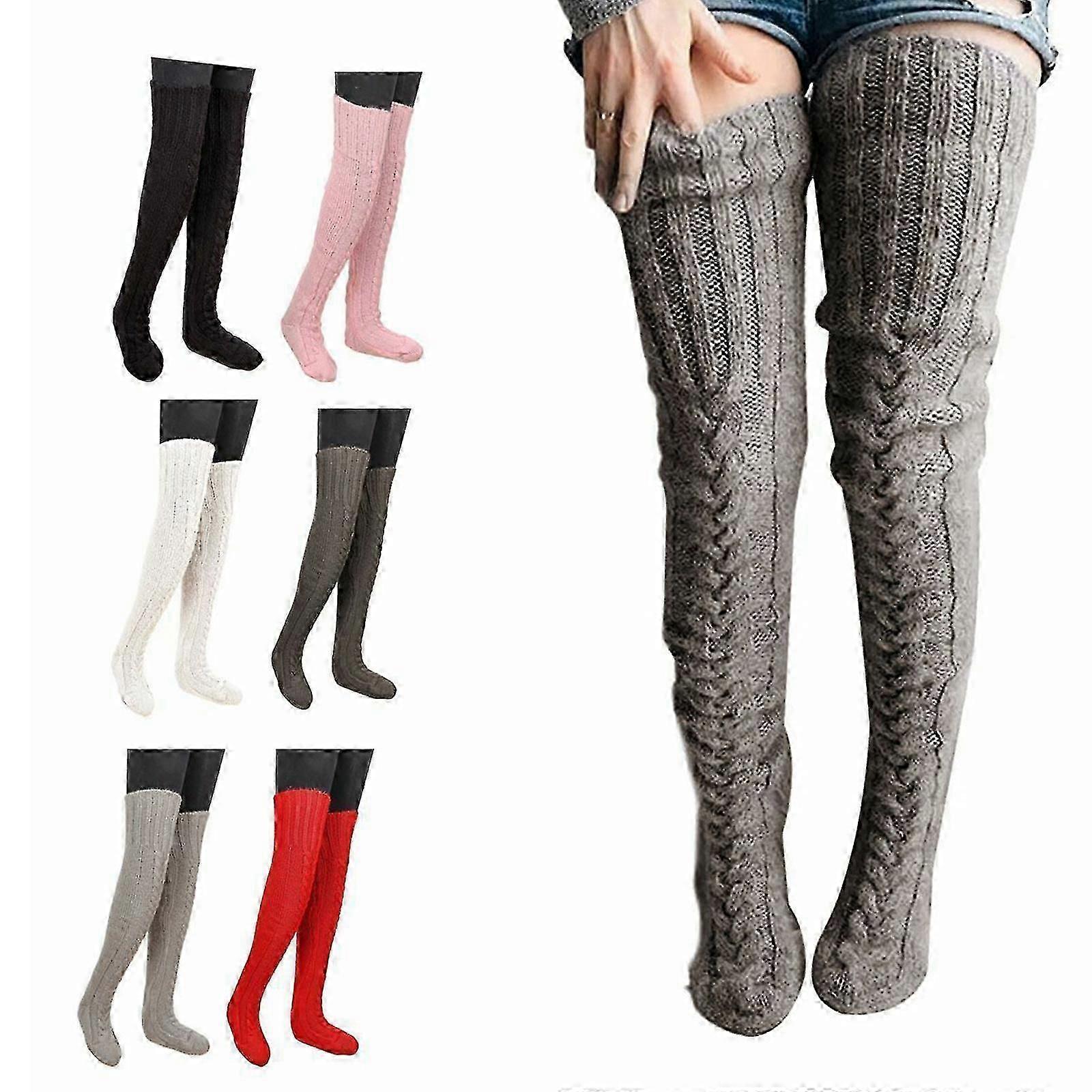 Long Socks Warm Over Knee High Wool Knitted Women Thick Stockings Thigh Winter