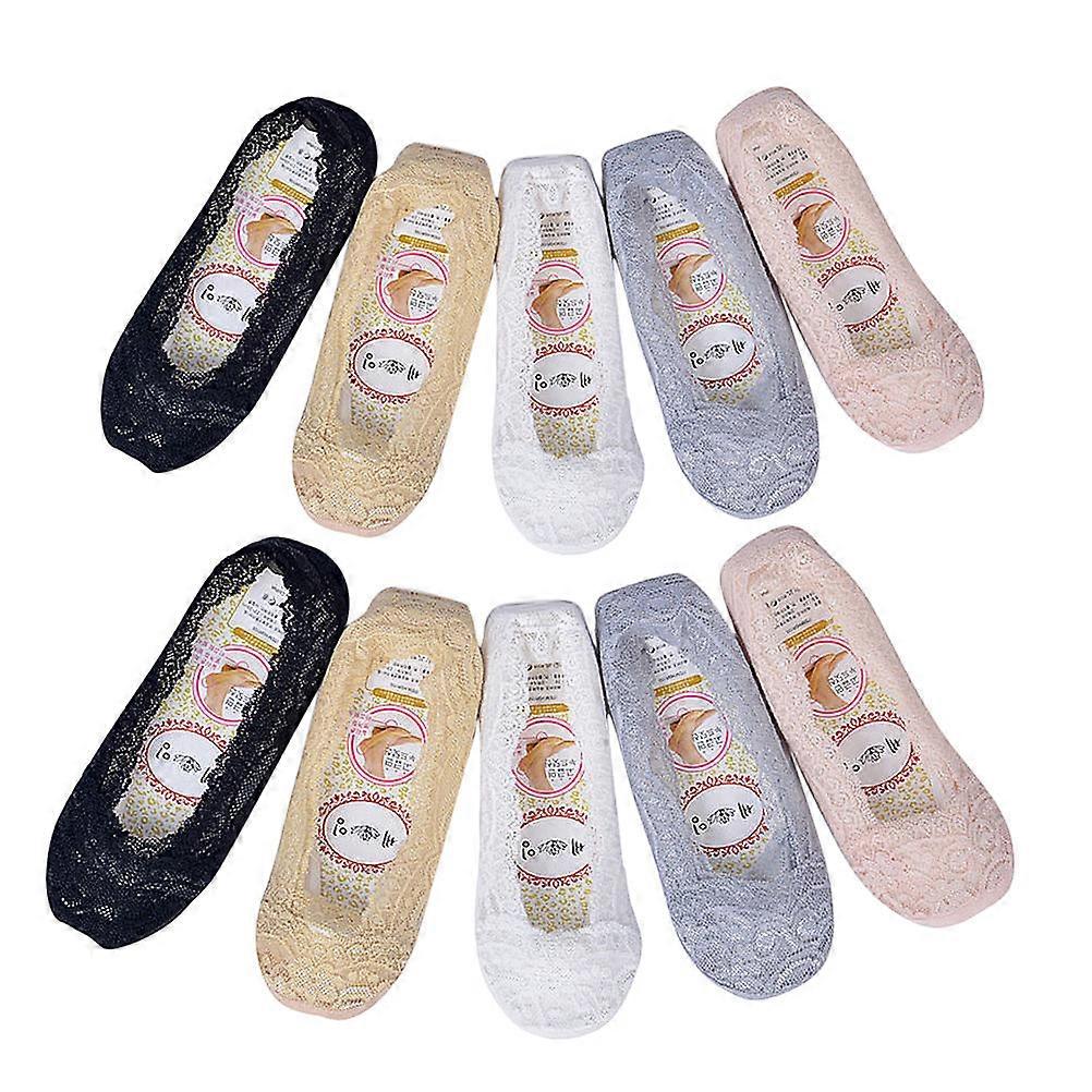Invisible Socks Women Anti-slip Breathable Lace Boat Socks 10Pair Assorted Color Casual Wear