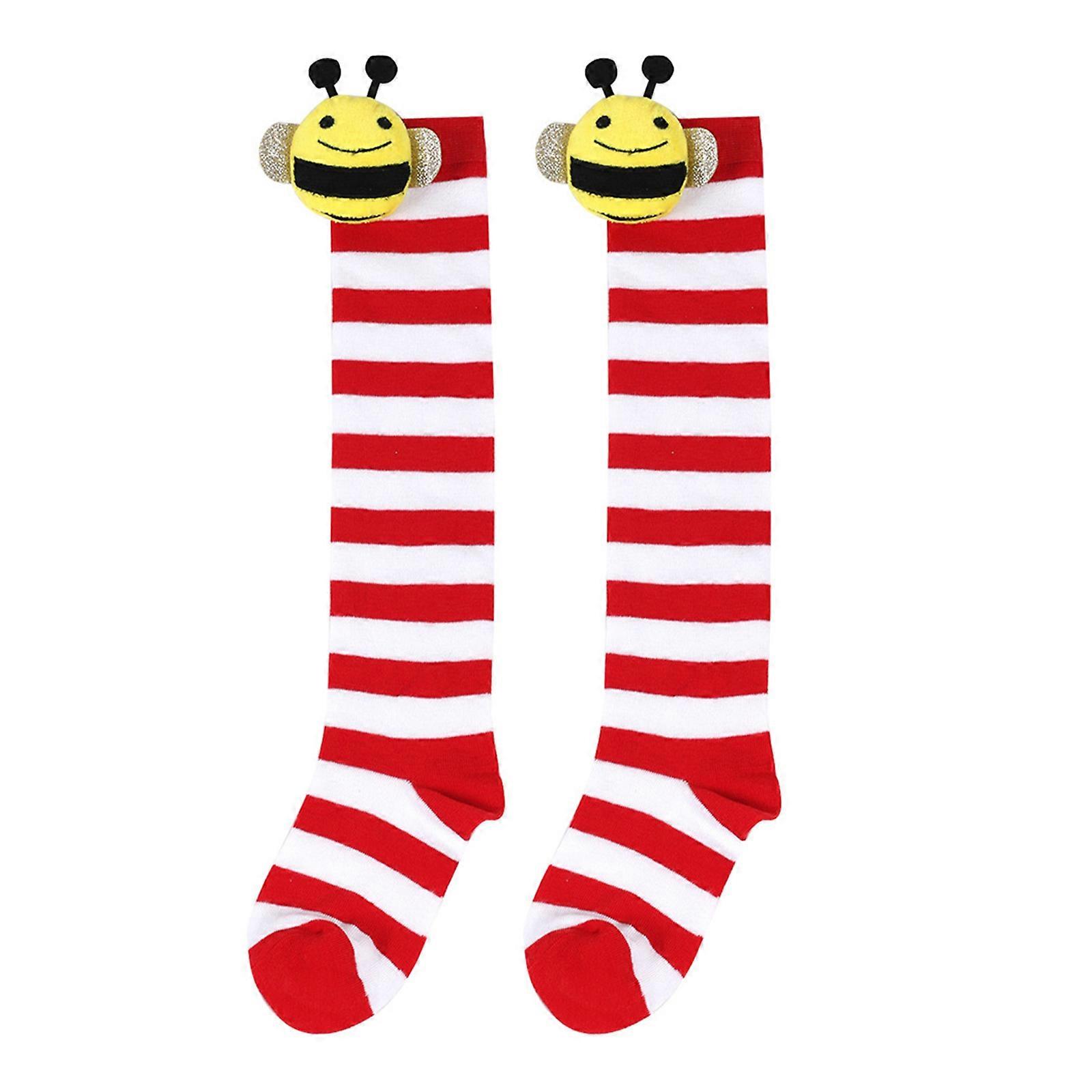 Striped Thigh High Stockings Over Knee High Tube Socks Cartoon Bees Doll Long Stockings for Cosplay,Halloween,Party