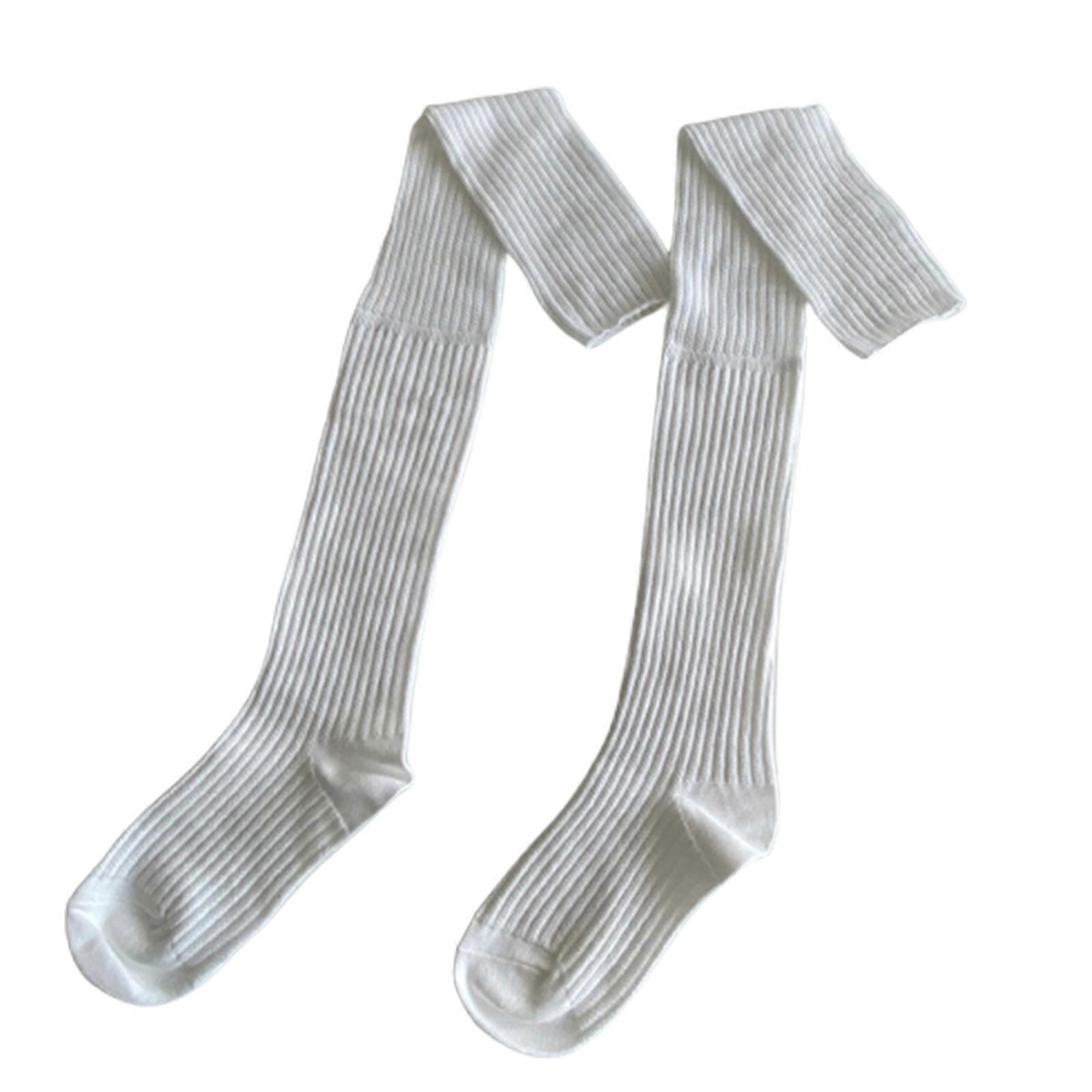 Women's Cotton Thigh High Socks Over Knee High Long Leg Stockings Warm Long Boot Leg Warmers JK Student Girls Stockings White