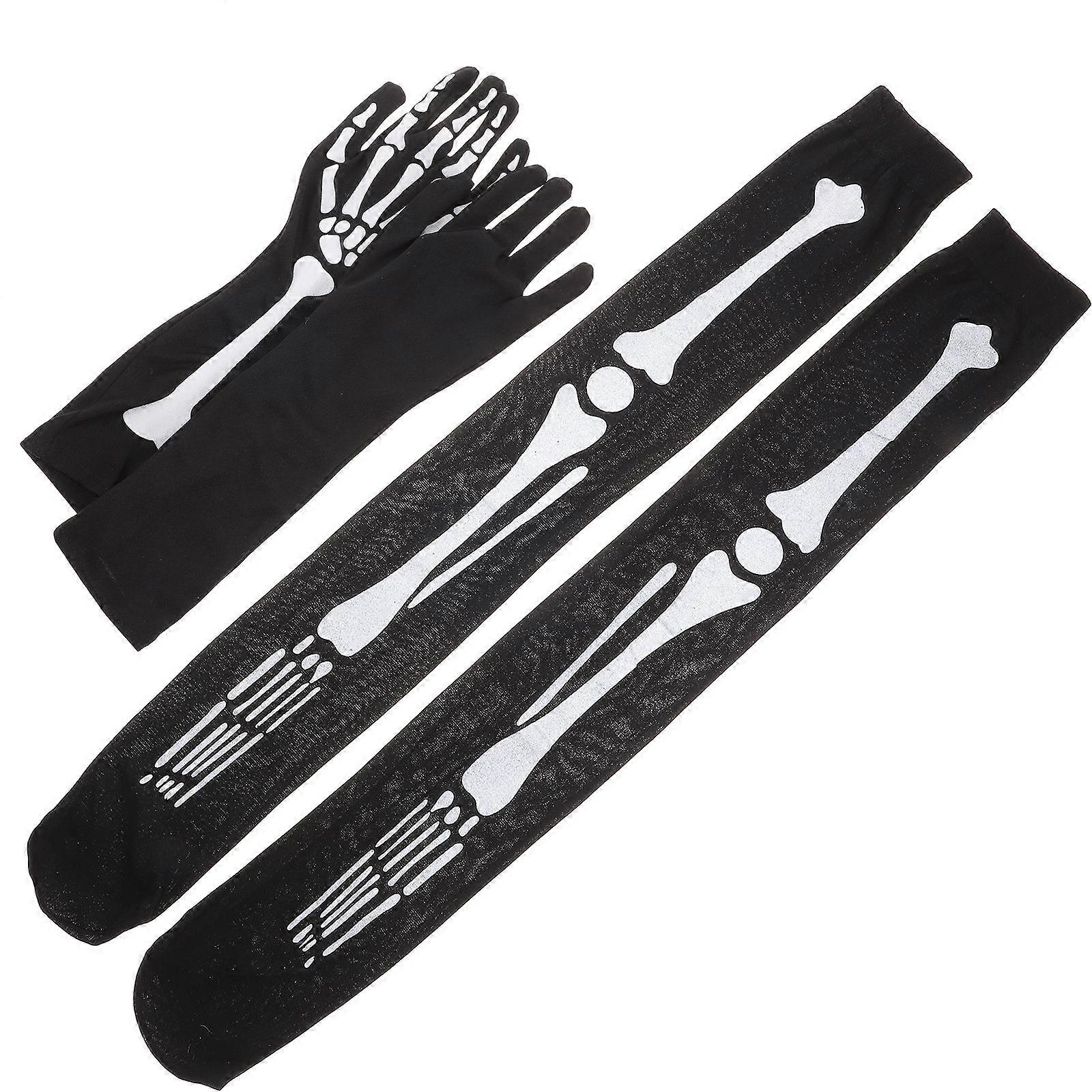 Costume Party Skeleton Stockings And Gloves For Adults Halloween Festivities 3 Sets Anti-slip M Size