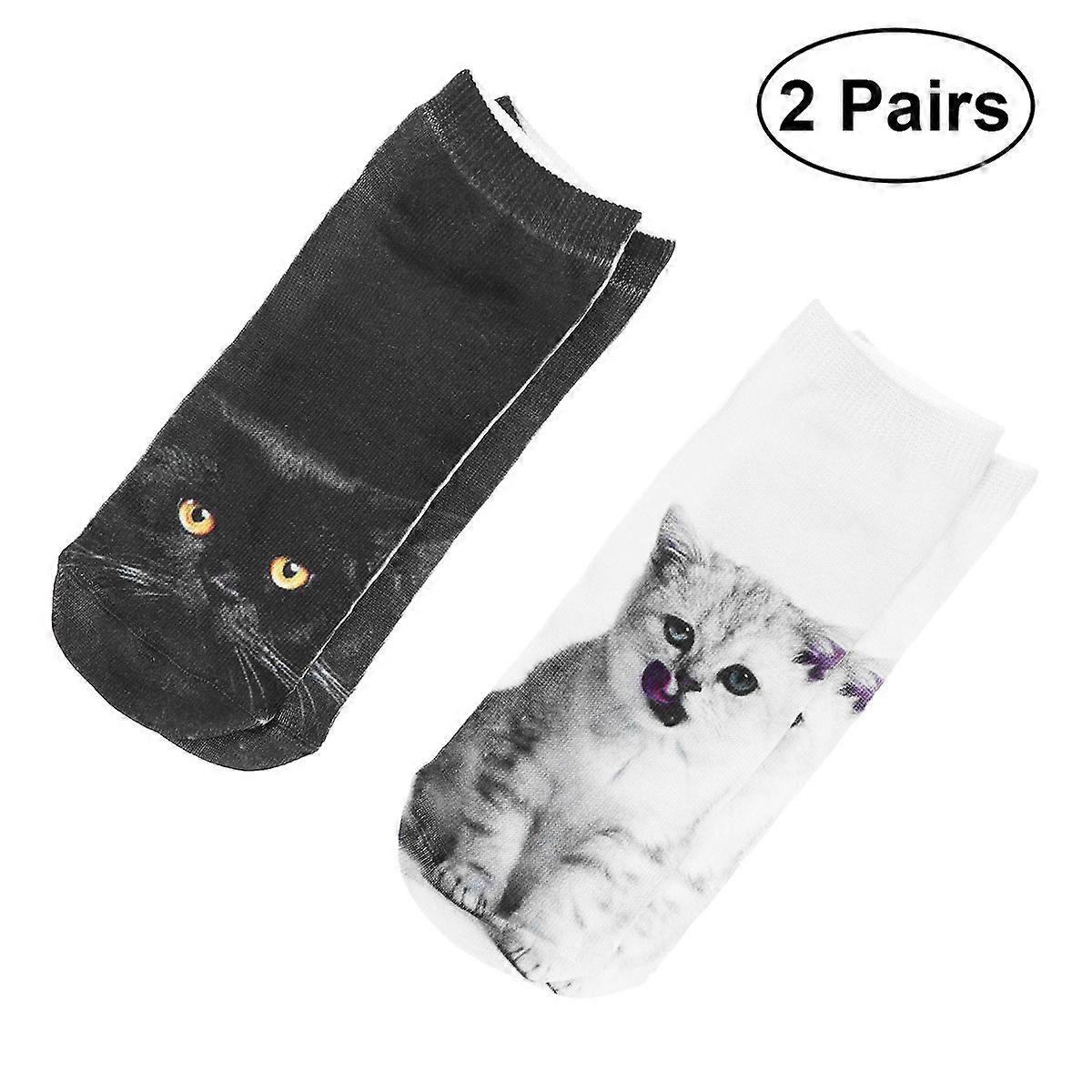 Ladies Novelty Socks Cat Printed Women Casual Socks Unisex Comfortable to Wear 2 Pairs
