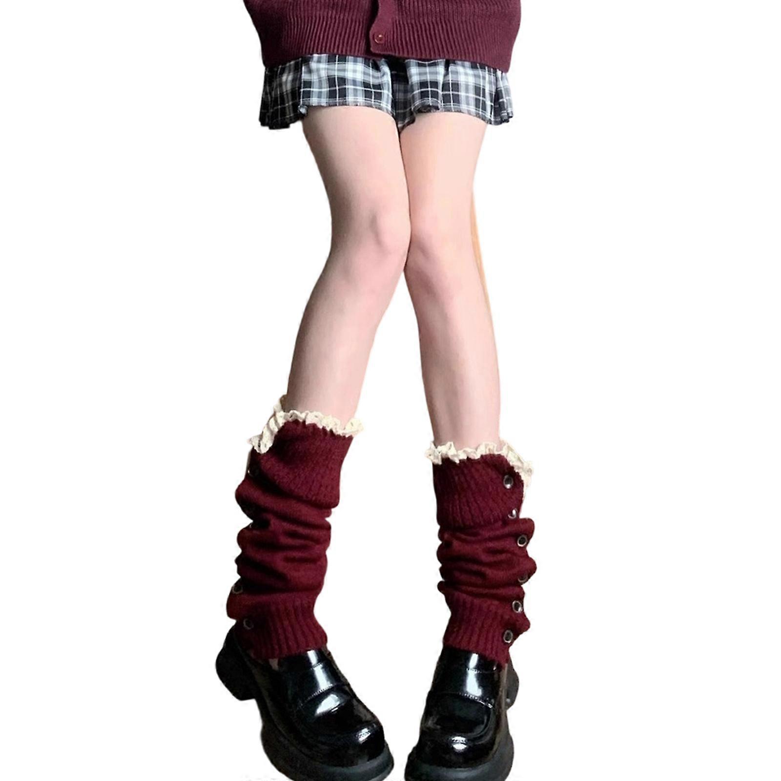 Women Stretch Socks Acrylic Thermal Fabric Leg Warmers Sleeve Fashion Knitted Accessory For Extended Wear Multiple Colors Burgundy