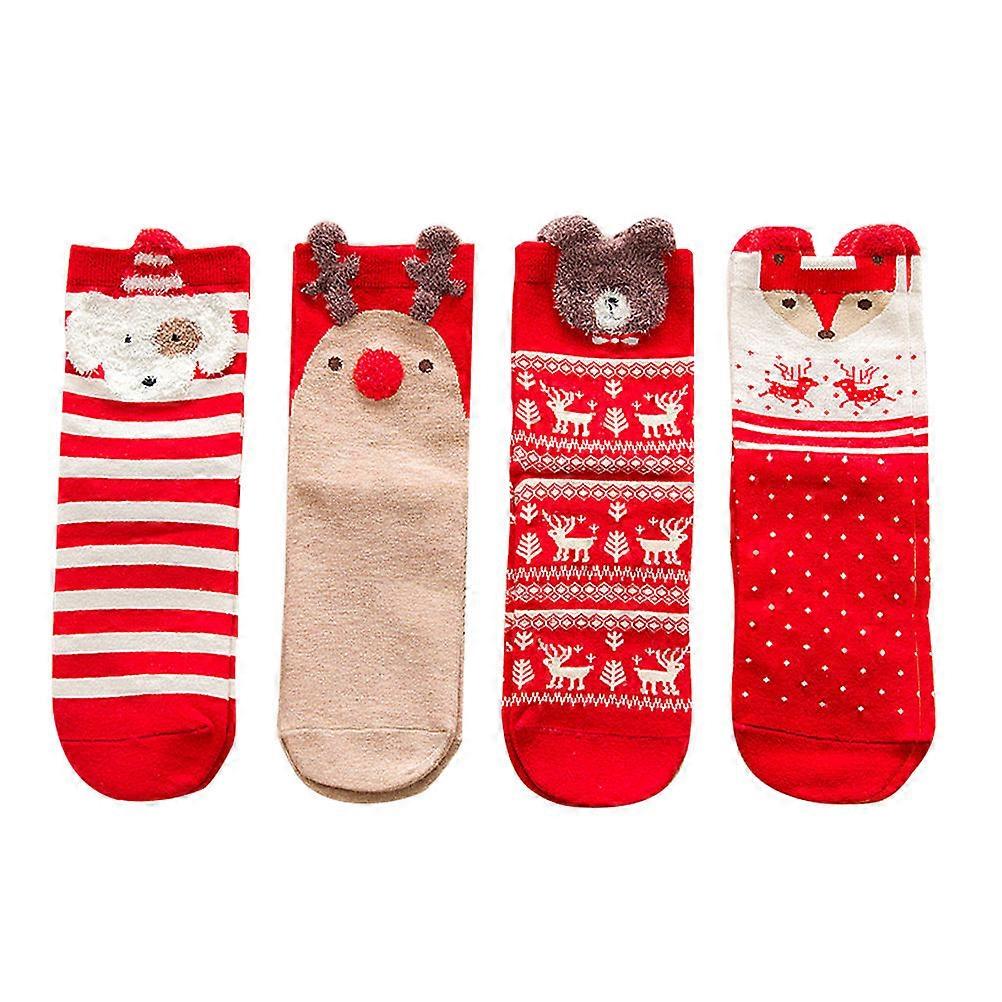 Colorful Socks Girls Mid-Calf Length Red Cotton 4 Pairs Breathable Indoor Activity
