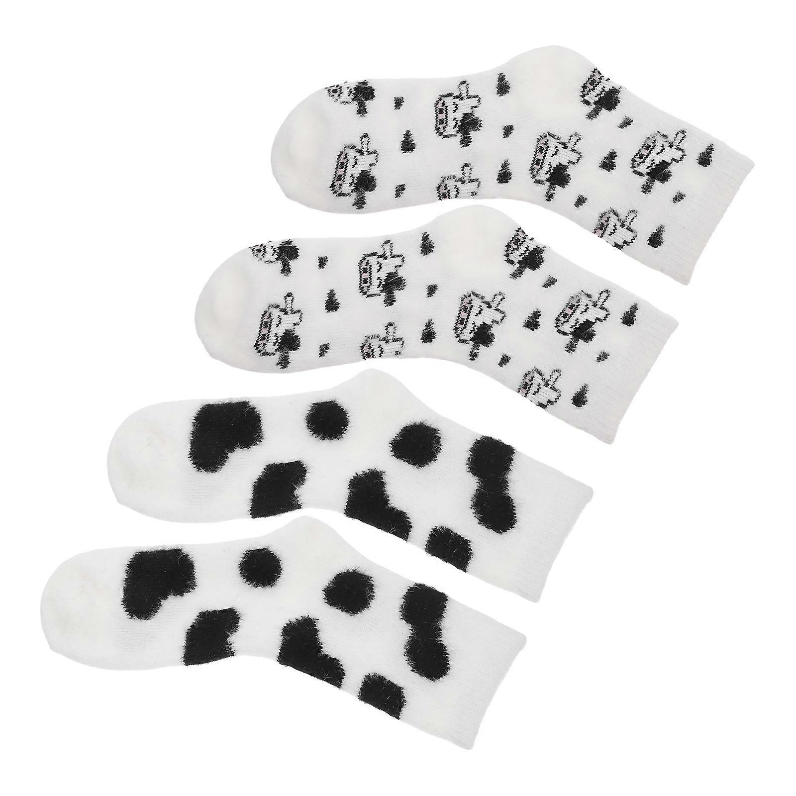 Fuzzy Animal Socks Cute Cow Female Plush Socks Daily Use White with Moo Pattern Breathable 2Pairs