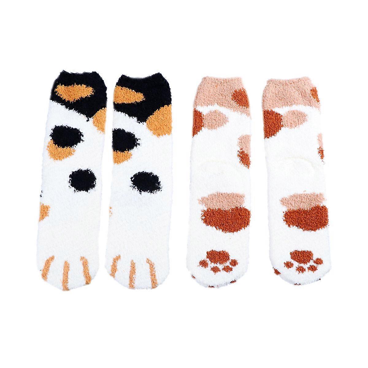 Thermal Socks Coral Fleece Tube Socks Daily Wear Indoor Use Spotted Khaki Warm Soft 2Pair