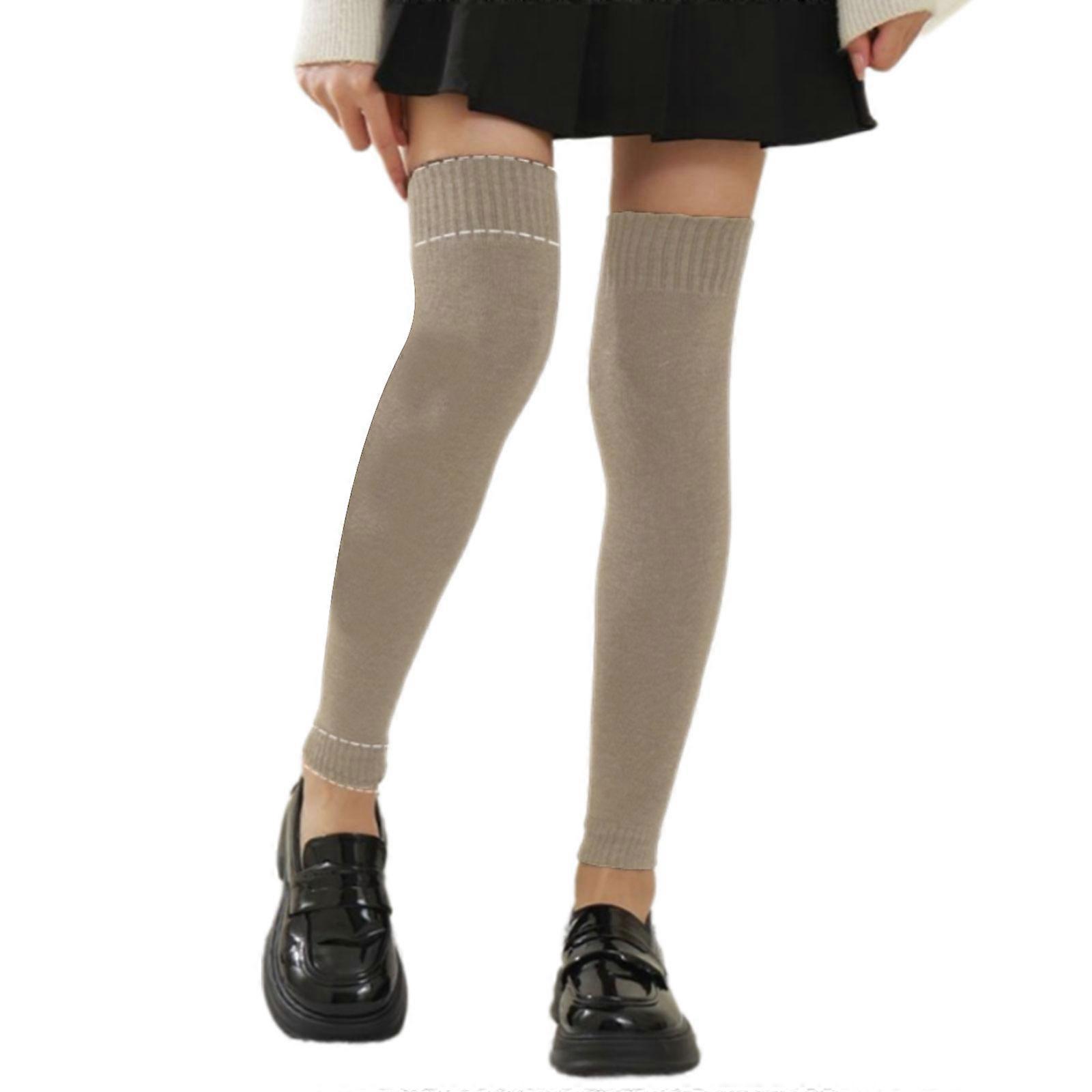 Stretchy Over Knee Leg Warmers Thermal Winter Socks For Women Breathable Design Cold Weather Protection Daily Wear Khaki