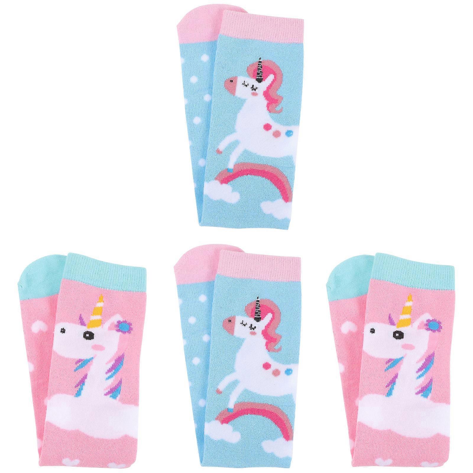 Children Cartoon Knee Socks Unicorn Socks for Kids 2Pairs Assorted Color