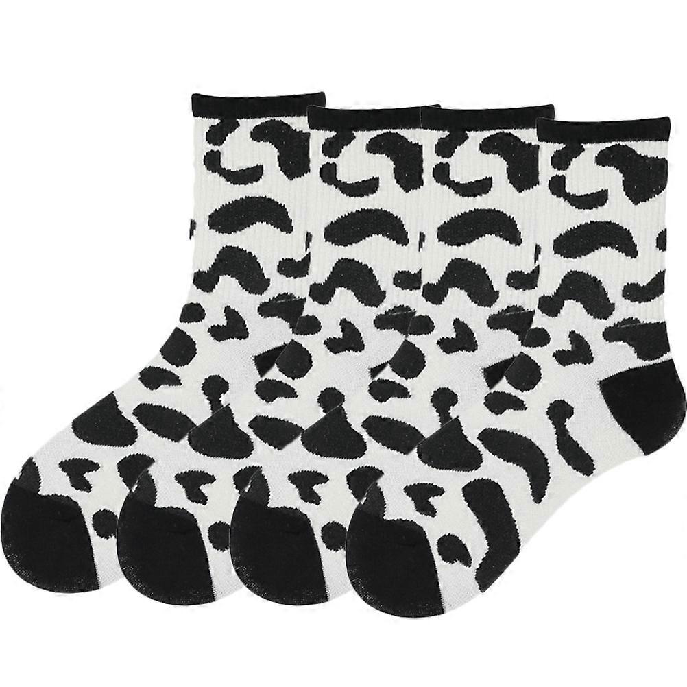 Animal Print Knee Socks Cute Cow Pattern Socks Girls Home School Activities 2Pairs