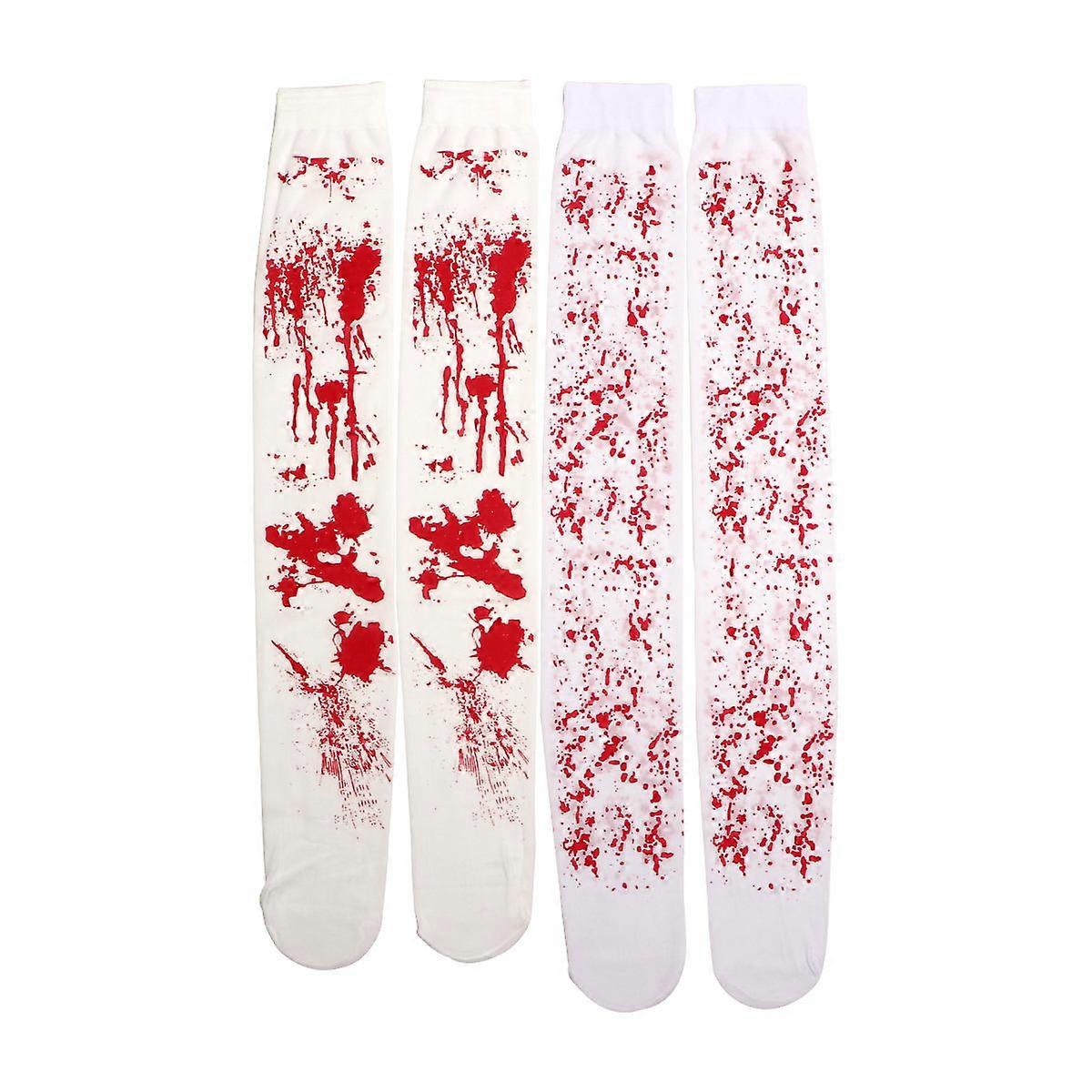 Blood Socks Prop Halloween Stockings for Party 2Pairs White Cosplay