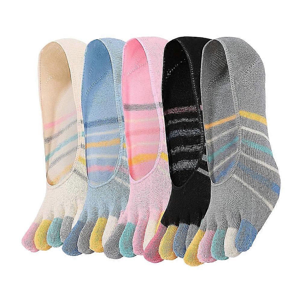 Stripe Pattern Socks Invisible Low Cut Socks for Women Ventilation Skin-friendly 5 Pairs