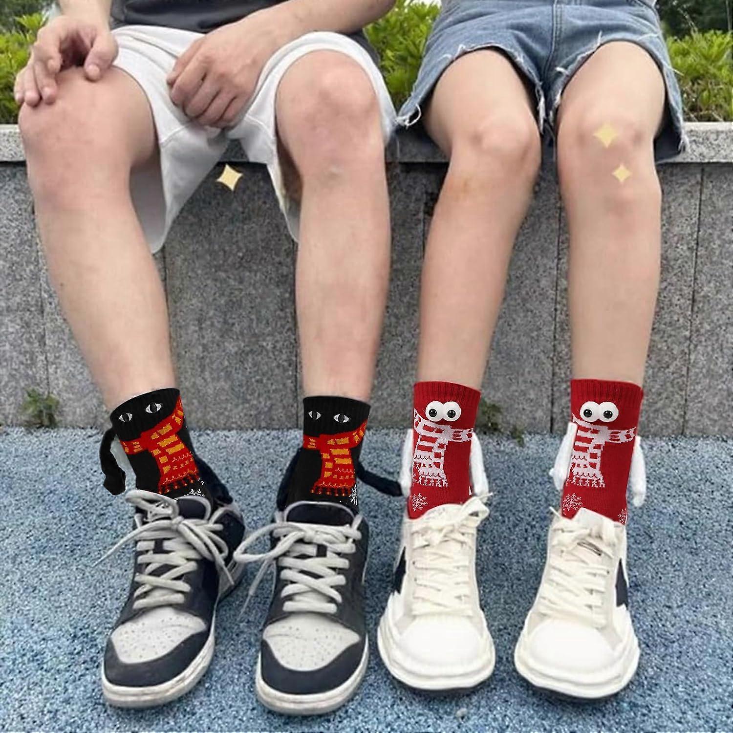Christmas Socks with Magnetic Arms, Unisex 3D Dolls Pair of Socks, Hand in Hand Socks, Magnetic Friendship Socks with Hands, Funny Magnetic Christmas