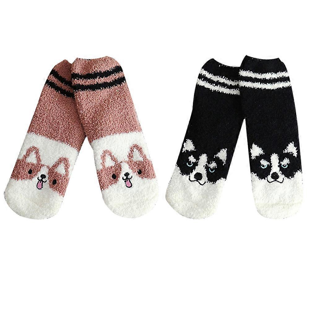 Winter Socks Warm Fleece Socks Assorted Color 25x8cm Moisture-Absorbing 2Pairs