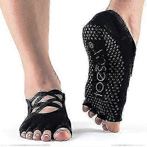 Toesox Half Toe Elle Criss Cross Five Toe Yoga Pilates Barre Grip Socks Black