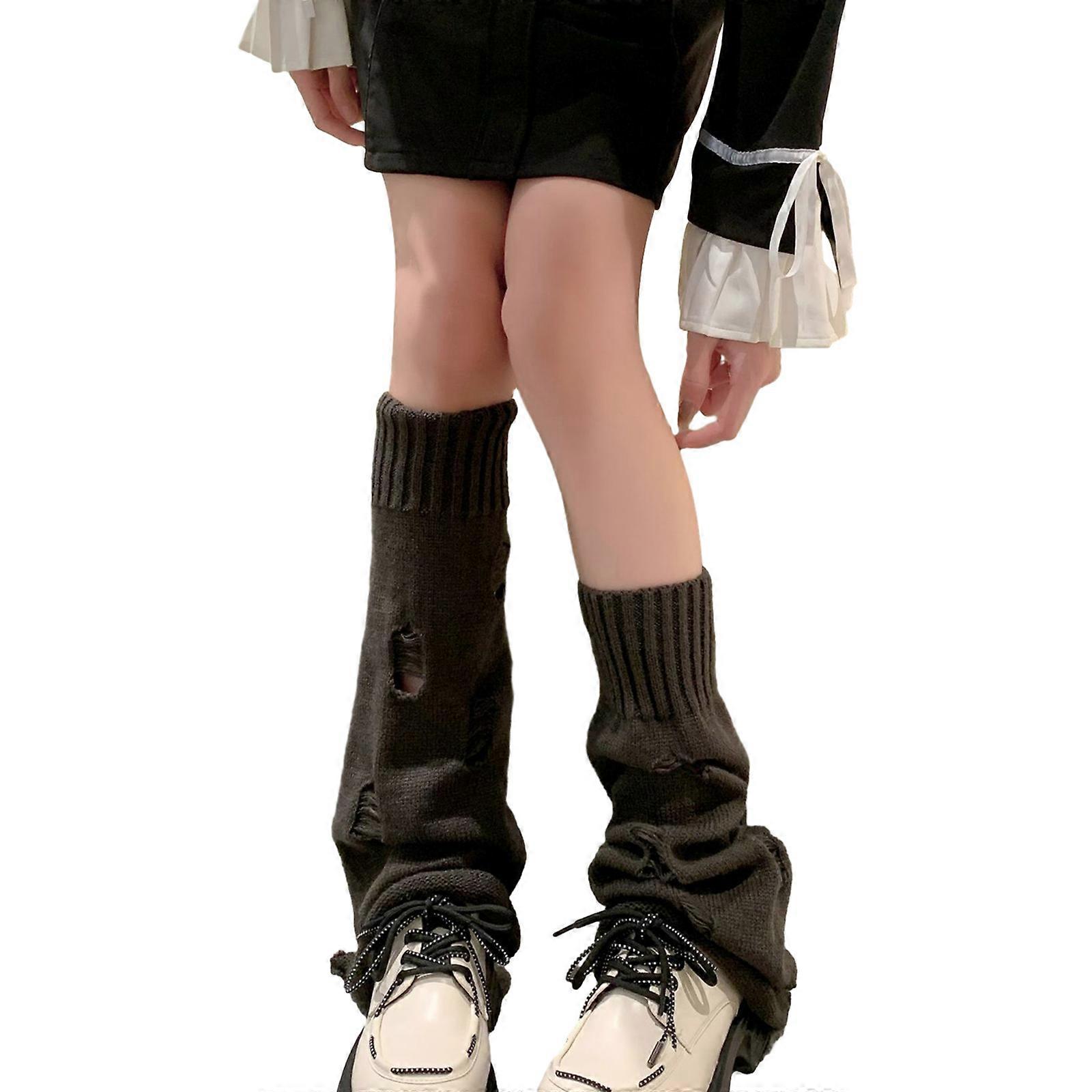 Women Knitted Winter Stocking Leg Warmers Long Socks Boot Cuffs Toppers Legging Pads Knee Brace Pads Knee Warmers Sleeve dark gray