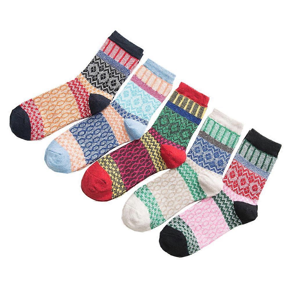 Assorted Color Women Socks 10 Pairs Warm Wool Socks for Cold Weather Protection National Style Design Perfect for Office Home