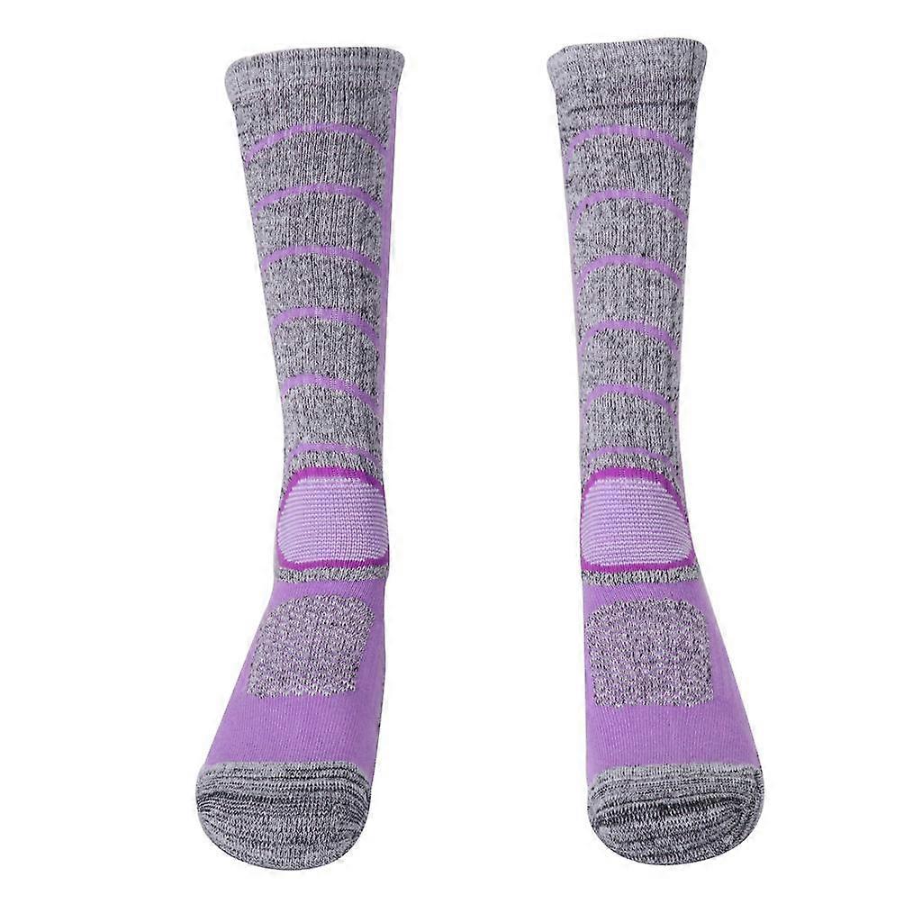 Description: Mens Womens Autumn Winter Outdoor Thermal Long Ski Snow Walking Hiking Sports Towel Socks Socks with heel integrated design, not easy to slide, Towel thickened design, thickened soles and instep, soft texture, breathable sweat conducting better Very comfortable! Suitable for Skiing, Riding, Skating, Mountaineering, Traveling, Hiking and other outdoor activies Material: Cotton blend Specification: Color: Purple Total Length: 36cm/14.1" Size: M US Size: 5-8.5 UK Size: 3-6.5 EU Size: 35-39 Package Includes: 1 Pair Socks