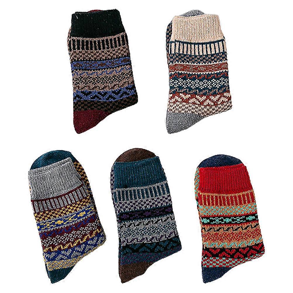 Fall Socks Women Thermal Socks Comfortable Thick Warm Stockings Mid-Tube Ethnic Style 5 Pairs
