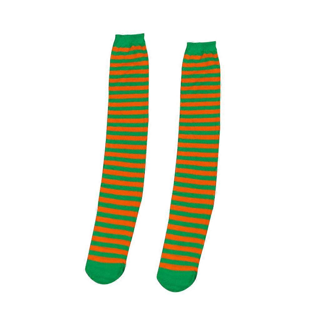 Sexy Stripe Socks St. Patrick's Party Long Socks Festival Party Stockings for Women Girls (Yellow and Green Stripe)