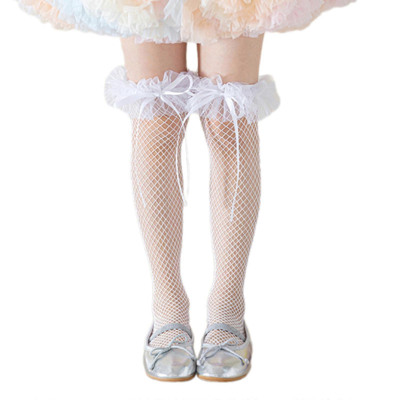 Summer Sweet Bowknot Socks for Children Stylish Soft & Breathable Knee Length Lace Socks Stackable for Baby Girls White