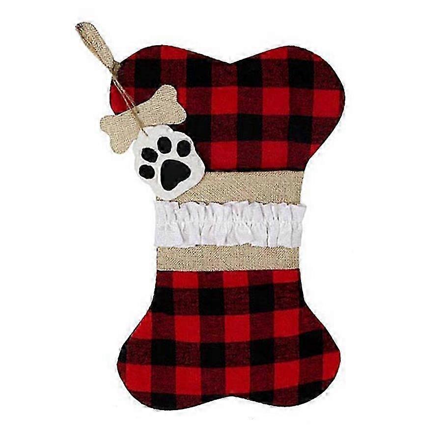 Pet Sock Bone Plaid Christmas Stocking Dog Cat Gift Bag Ornaments 2025