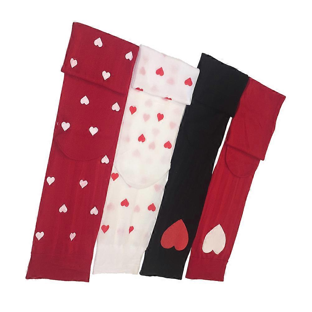 Stocking Women Valentine's Day Dating Heart Design Long Cylindrical Leg Shaping Spandex 4Pairs