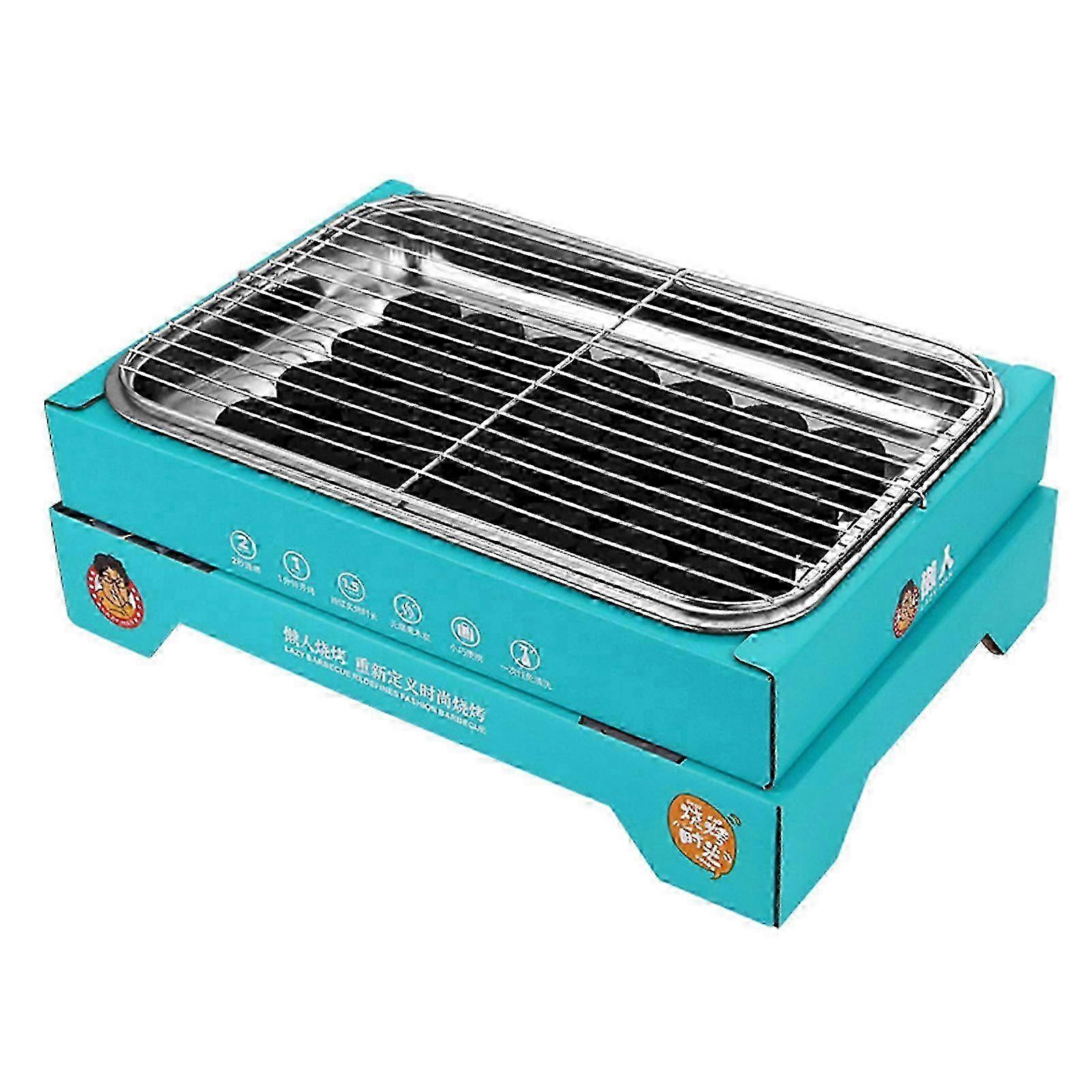 Charcoal Grill Single Use Compact Detachable Stainless Steel Portable Barbecue Smoker Grill for Outdoor Camping Light Blue (containing 30 Charcoal)