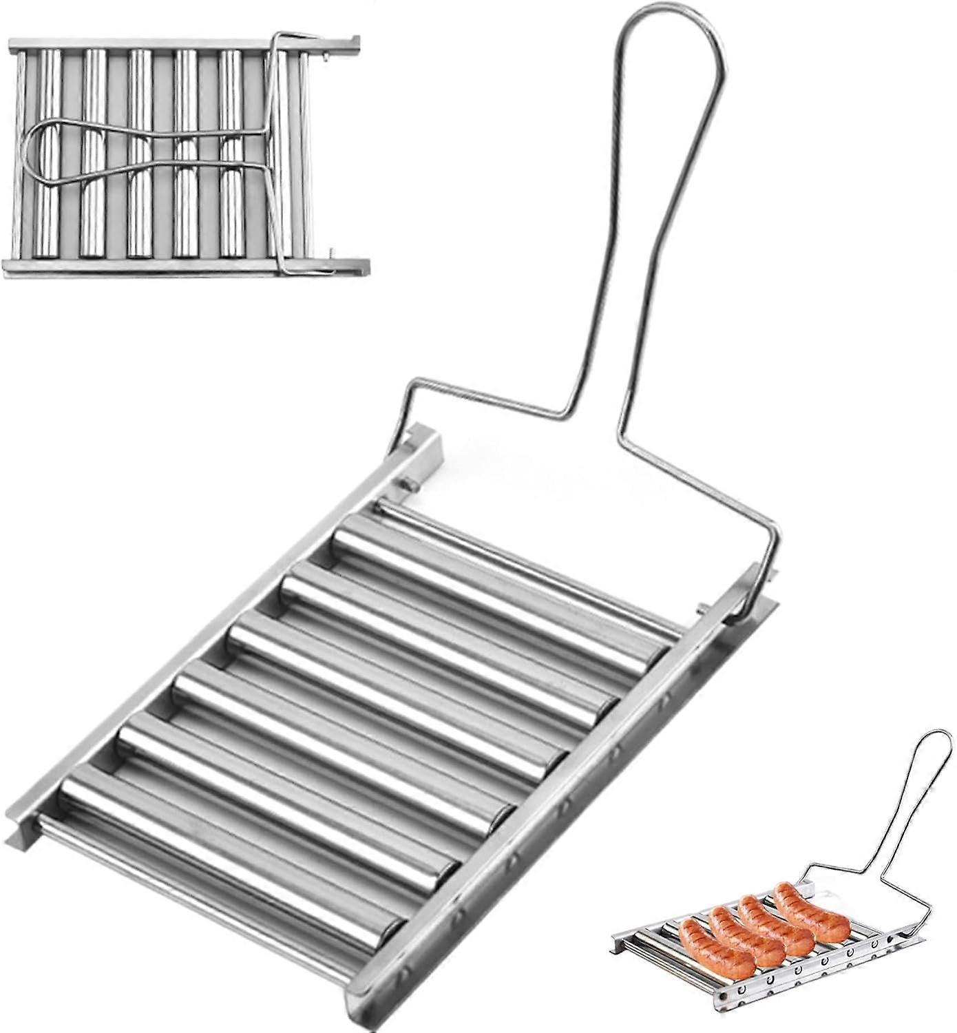 Stainless Steel Hotdog Roller Grill, 5 Hot Dog Capacity BBQ Grill Rack for Even Cooking, Portable Garden Supplies