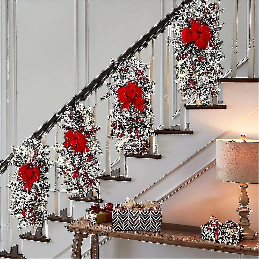 Online pre-lit staircase luxury fireplace Christmas wreath warm light