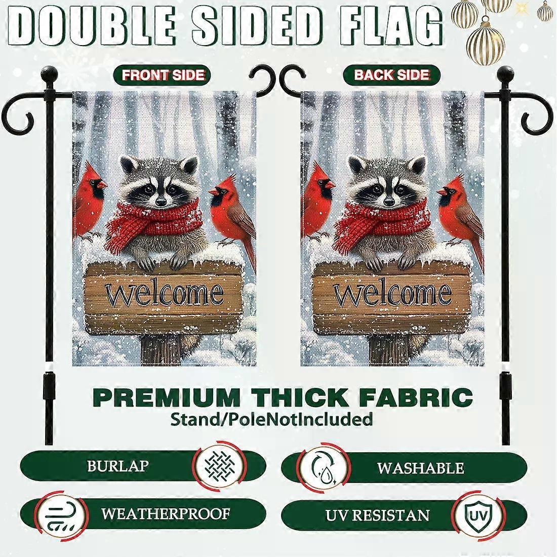 Winter Raccoon And Cardinals Garden welcome flag courtyard decor Double Sided House Flag Welcome Decorations excluding flagpole