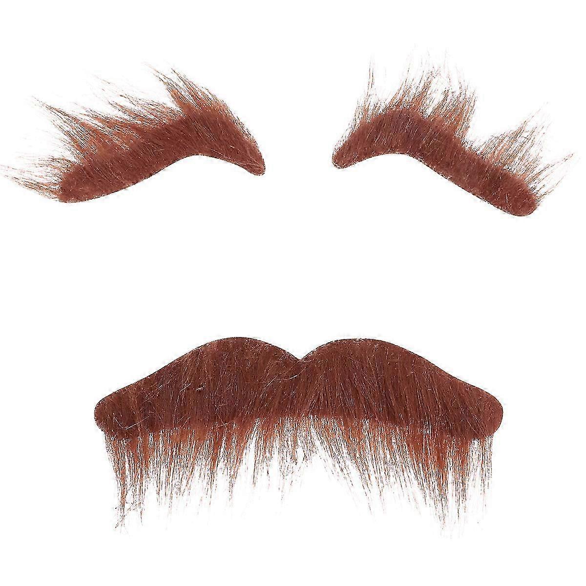 Self Adhesive Fake Eyebrows Beard Kit For Halloween Costume Party Props Brown 1 Set