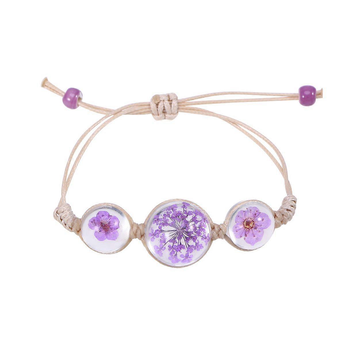 Plant Specimen Dried Flower Crystal Glass Ball Bracelet Women Hand-woven Rope Chain Bracelet - 02 (Purple)