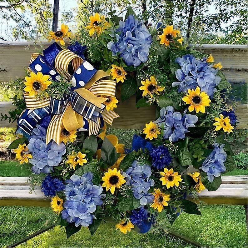 Ukraine Flag Sunflower Front Door Wreath, Artificial Wreath Spring Decorations Party Festival Decoration Farmhouse Cottage Wreath for Home Porch