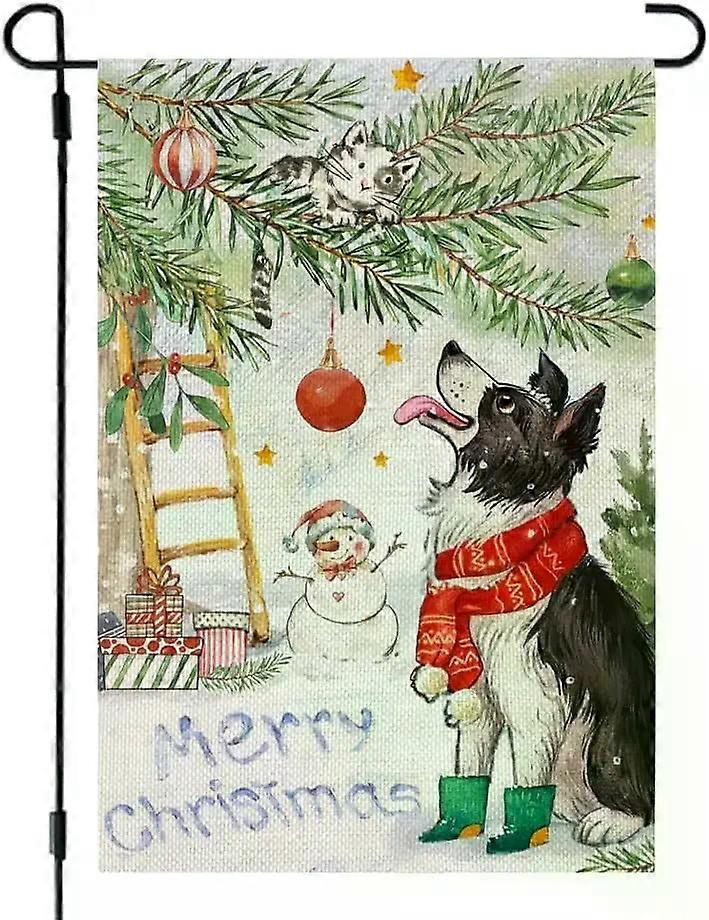 Merry Christmas Border Collie Dog Garden Flag 12x18 Inch Double Sided Small for Outside Snowman Holiday Yard Flag Polyester