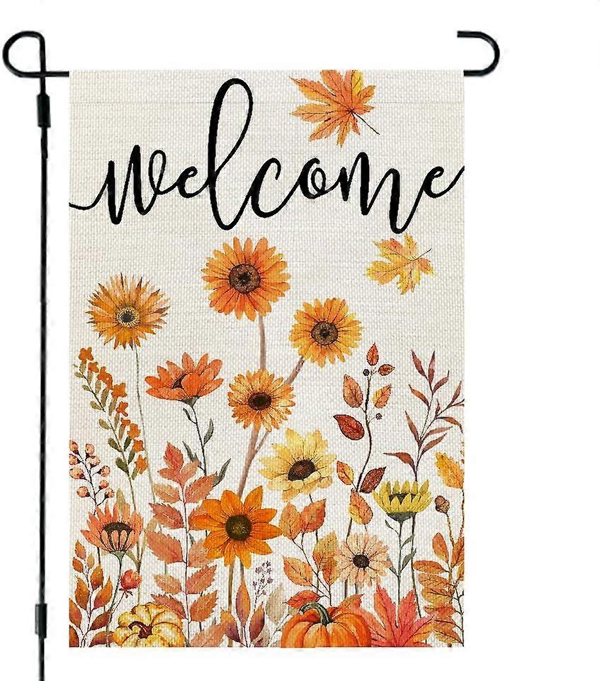 Fall Garden Flag 12x18 Inch Double Sided for Outside Welcome Daisy Leaves Floral