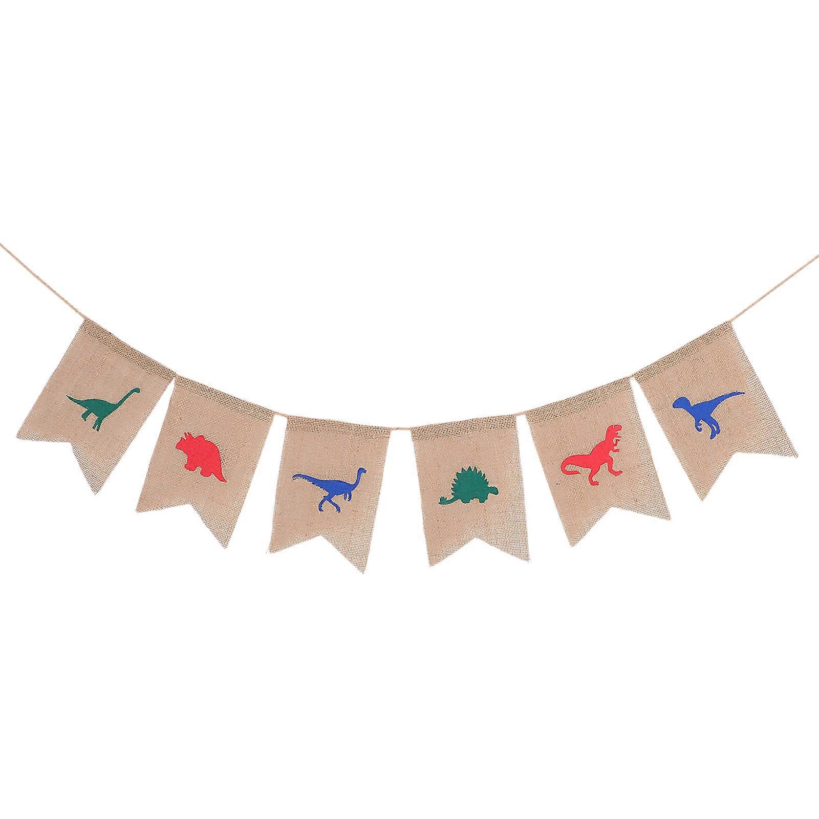 Dinosaur Flag Linen Banner for Kids Party Decoration 2Pcs
