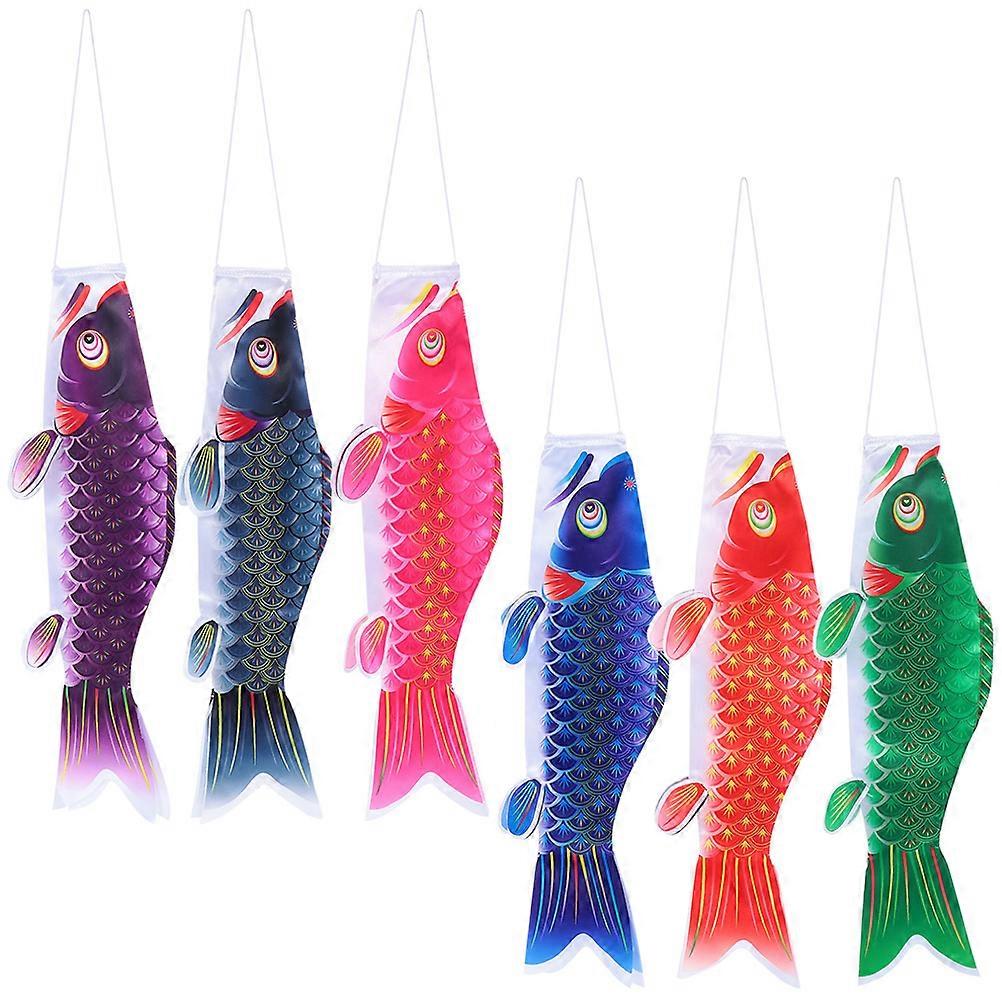 Windsock Flag Outdoor 6Pcs Carp Shape Hanging Flag Decor for Festival Celebrations and Schools Made of Waterproof Satin