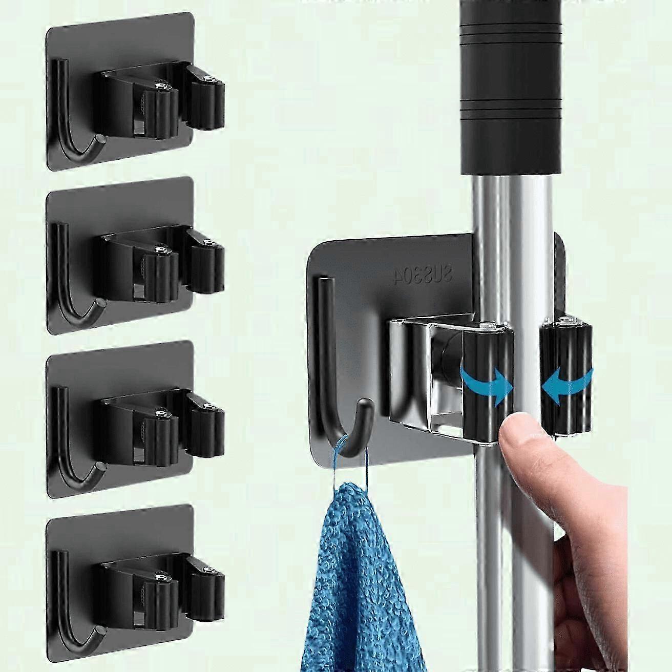 2025 Latest Model 4-Pack Stainless Steel Mop Broom Holder with Hooks, Heavy Duty Wall Mounted