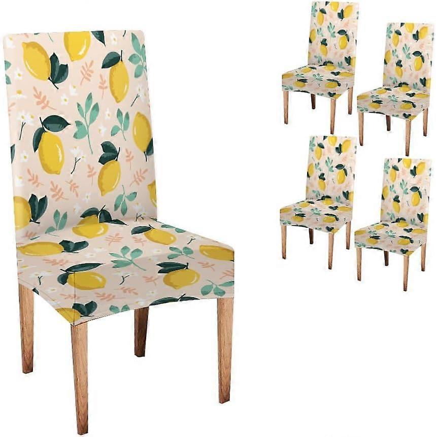 Pattern Parson Chair Slipcover 4 Pack Summer Pattern with Lemons Flowers and Leaves Seamless Dining Chair Slipcover Stretchable for Kitchen,Hotel,Rest