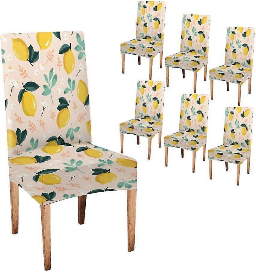 Pattern Parson Chair Slipcover 6 Pack Summer Pattern with Lemons Flowers and Leaves Seamless Dining Chair Slipcover Stretchable for Kitchen,Hotel,Rest