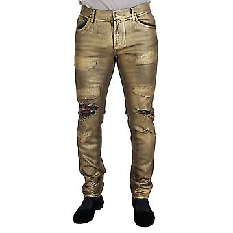 Dolce & Gabbana Men's Gold Cotton Tattered Skinny Men Denim Jeans