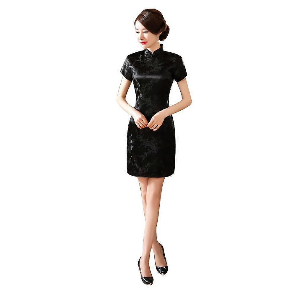 Diva Chinese Plum Blossom Bridesmaid Short Sleeve Split Mini Evening Dress